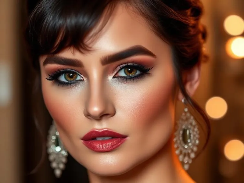 Show-stopping dramatic look with bold eyes, contouring, and statement lips